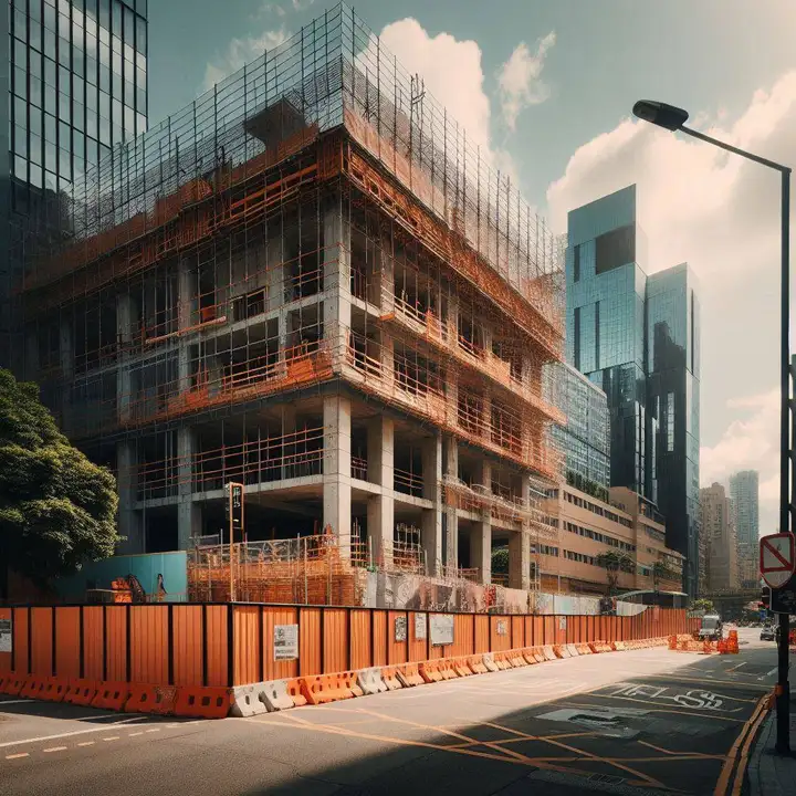 - Для пешеходов организован безопасный проход между стройплощадкой и соседним домом.